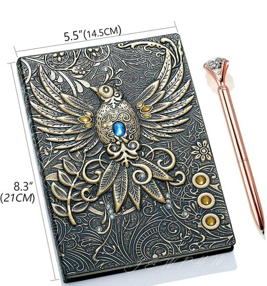 ❤ 3D Phoenix- Design: Handmade Vintage Journal-Hardback artificial Leather 3D Cover. The novelty notebook is made by a special handicraft technology, the cover is composed of leather and cardboard,to achieve a perfect stereoscopic effect.