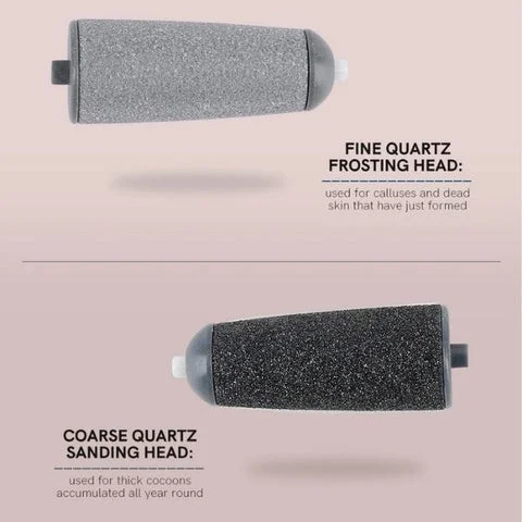 one fine roller for polishing and everyday maintenance and one coarse roller for smoothing stubborn calluses and dead skin.