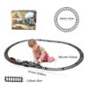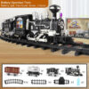 Plastic Remote Control Train: The remote control controls the train’s start, stop, acceleration, retreat, and sound functions. It requires 8 AA batteries (not included).