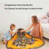 • Clean up in seconds – When the kiddos are done playing, you simply use the handles on the sides of the mat to lift and create a toy slide and watch the toys easily and quickly for cleanup in seconds.