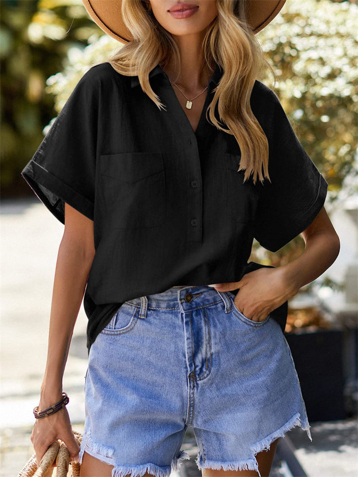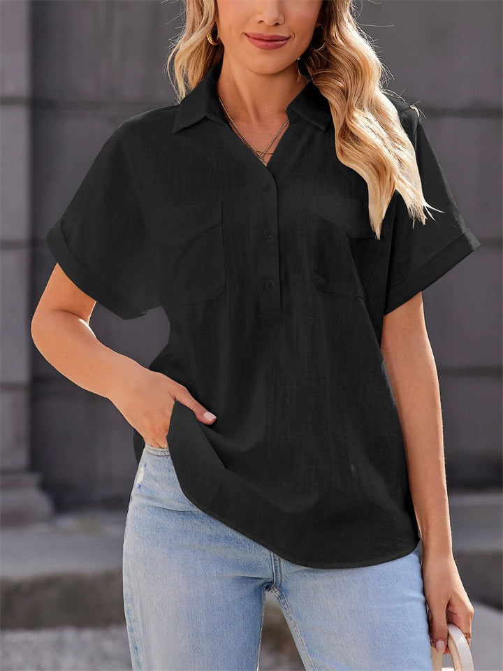 Women’s Summer Fashion V Neck Short Sleeve Pullover Shirt