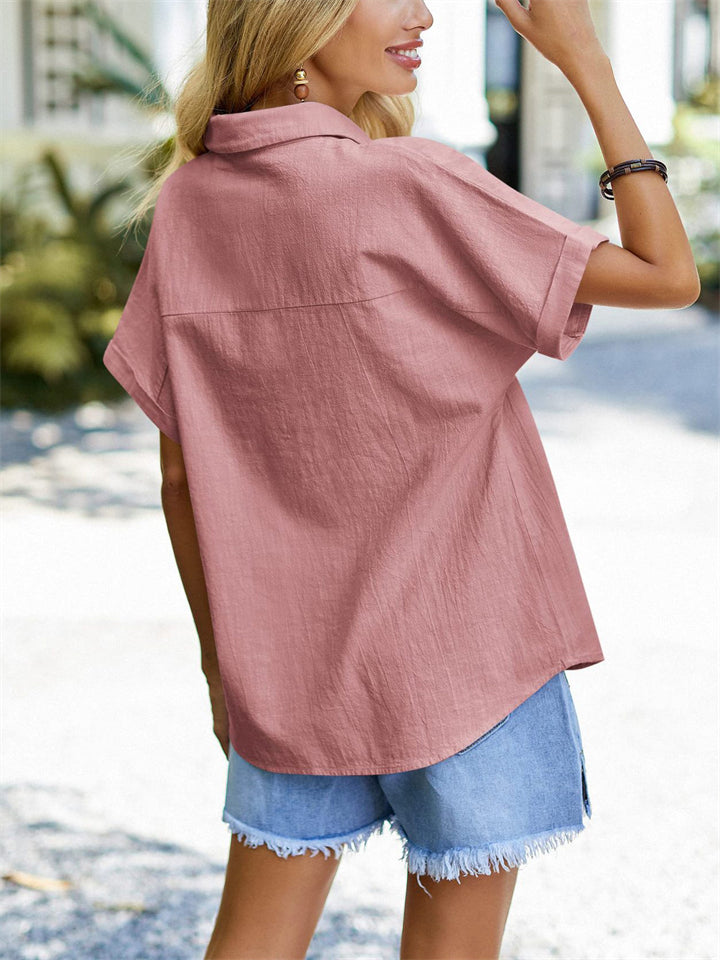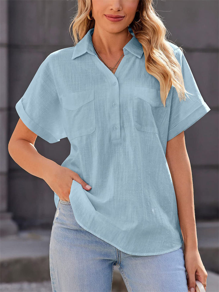 Women's Summer Fashion V Neck Short Sleeve Pullover ShirtWomen’s Summer Fashion V Neck Short Sleeve Pullover Shirt