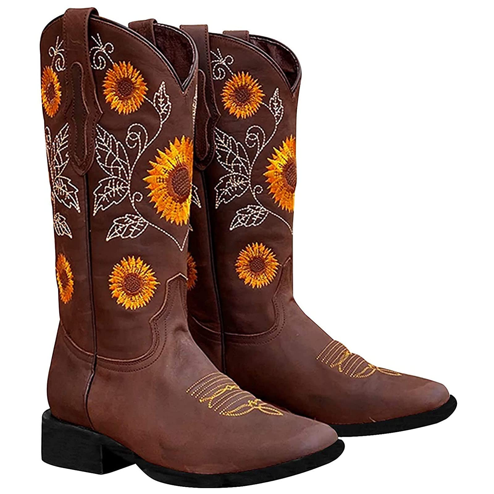 Women Ethnic Floral Embroidered Cowboy Western Boots
